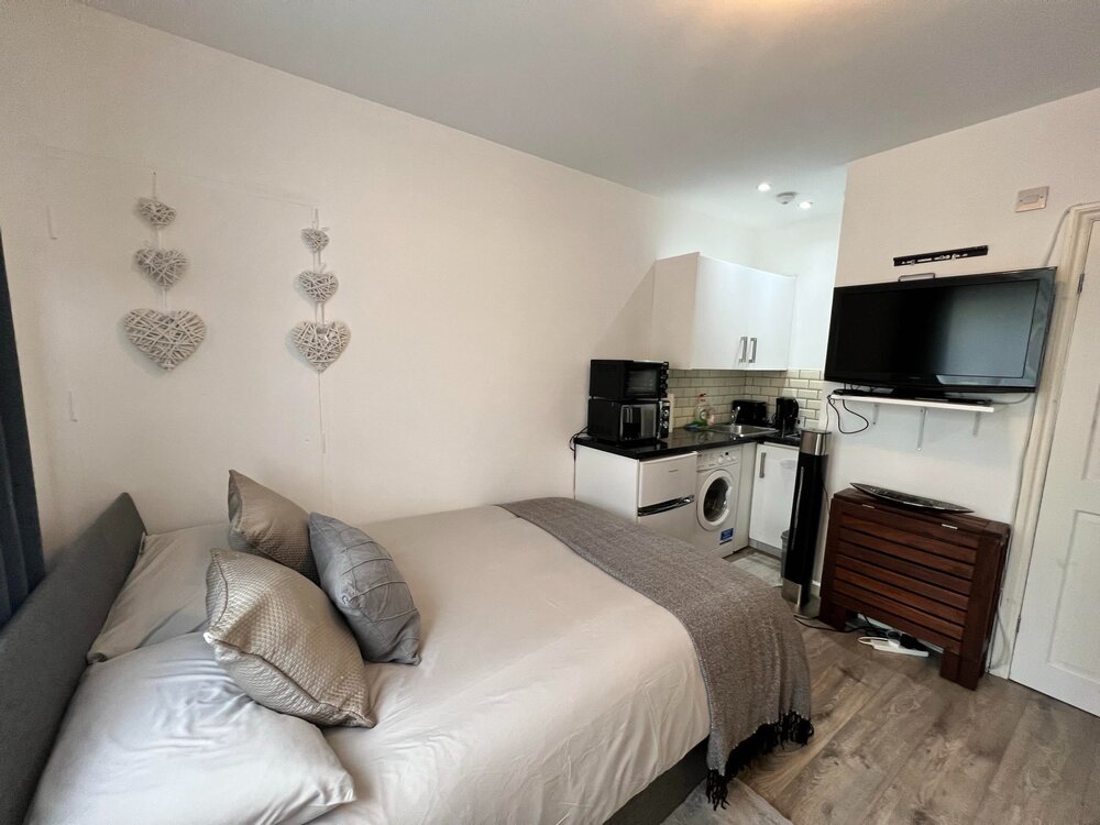 Lovely studio apartment in Bromley. Comfy double bed, own Kitchenette with all necessary cooking items, washing machine, fridge/freezer, TV, large mirror wardrobe, electric shower, toilet and lovely courtyard. Self check in & checkout, arrive at any time. Free parking on the driveway with dedicated space or free parking on the roadside. Only 15 mins walk away from Beckenham Hill station, trains going directly to Central London (45mins to London Blackfriars). Lots of shops on the High street such as M&S foods, Tesco, Convenience stores, Laundrette, Take away restaurants and more.